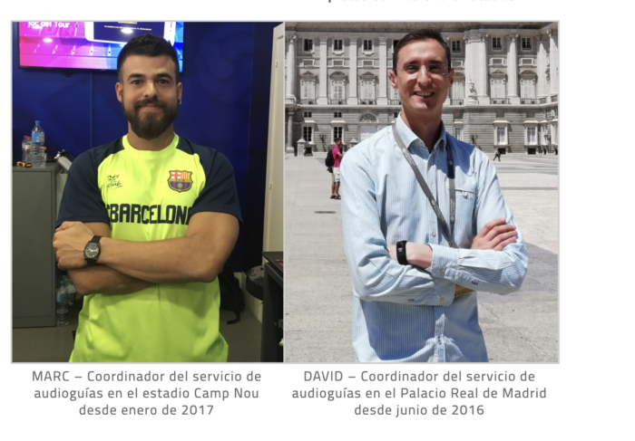 Entre los coordinadores activos actualmente – mitad de ellos mujeres – hemos preguntado a uno con un perfil determinado: experiencia previa gestionando audioguías tradicionales en estadio y lleva en torno a 3 años en el puesto actual, trabajando con guías interactivas. Por otro lado, hemos querido explorar otro entorno diferente (una catedral) entrevistando a uno de los miembros más recientes del equipo.